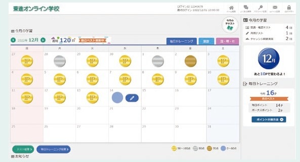※毎日トレーニングで90点以上だとカレンダーにゴールドポイントが表示され、続けるモチベーションになります!